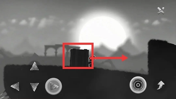 ①把石块推到右侧的小坡那里,踩着石块翻过这个小坡。要留意避开恶魔。