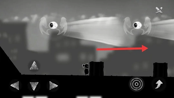 ①第七关的场景设定在公路上,操作方式很简单,只要一直往左移动就能推进关卡,这一关没有什么特殊的机制或设计点。通关的关键技巧就在于要以快速、精准且果断的反应去躲避恶魔(因此没有附上相关图片)
