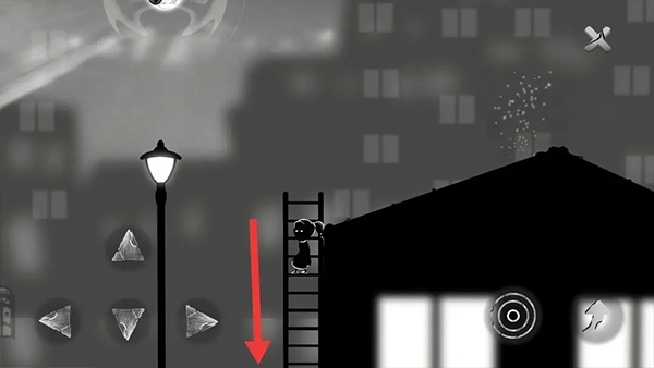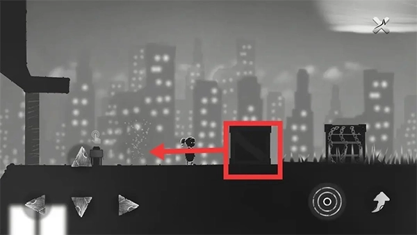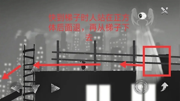 ④把高楼的正方体往左推(建议从正方体右侧发力),这样正方体会顺着斜坡滑下去触发机关,小女孩则要顺着梯子返回。