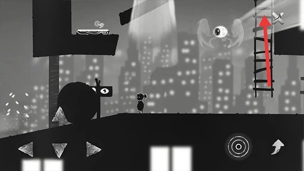 ③将球向左推至石门,再向右爬梯子来到高楼。