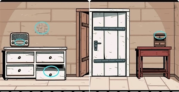4、在白色门右侧的抽屉柜中找到两节电池,先将电池装入对讲机,接着把频道调至4收听里面播放的音乐,之后点击收音机并将其频道调整到刚才听到的音乐对应的频道(需记住该频道数字,不同音乐对应不同频道)。