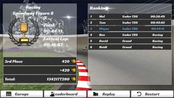 5、驾驶车辆超越对手,完成规定圈数并抵达终点即可结束比赛,赛后将依据最终名次发放金币奖励。
