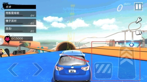 游戏的操作模式为“虚拟方向盘+按键”,左下角的虚拟方向盘用于控制赛车转向,右下角则配备了油门、刹车、手刹三个功能按键。