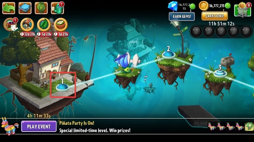 在叙事结构上,游戏摒弃了前作的线性推进模式,转而允许玩家自由探索地图。除了核心主线关卡外,还设计了诸多分支关卡,这些分支关卡需要玩家收集足够的钥匙或星星才能解锁进入。完成支线关卡后,玩家可以获得额外奖励,包括全新的植物种类,以及各类系统升级福利,比如更多的卡片槽位、初始阶段的阳光数量提升和小推车道具等。这些奖励内容在地图界面中可以随时查看,使用起来相当便捷。