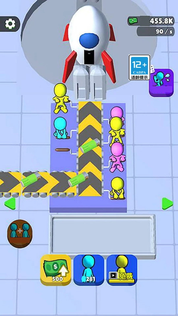 玩家能够点击屏幕上的工人来指挥他们开展工作,还可以拖动相同颜色的工人进行合并,以此得到能力更出色的高级员工。
