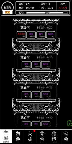 3、更换新装备与宝石后,前往主城中的镇妖塔挑战。每五层会掉落大量资源,包括招募令、橙将、高级装备等稀有道具。