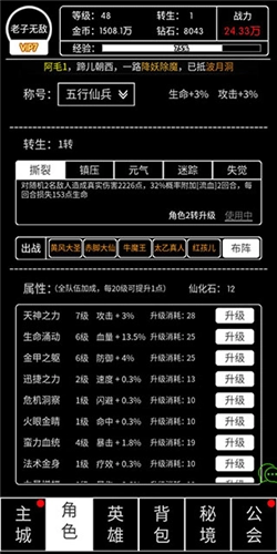 5、建议优先提升攻击、防御和生命值这些属性,其他加成效果相对来说比较普通。剩下的化仙石建议先留着,等后续转生阶段再用。这个时候战斗力已经有了显著的提高,可以找一个活跃的公会加入,体验更丰富的多人协作玩法。