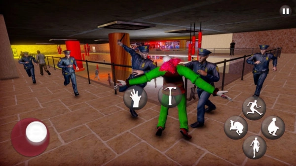 作为小丑英雄的杀手,你得在这个小丑目标警察的游戏里和商场保安战斗才能脱身。