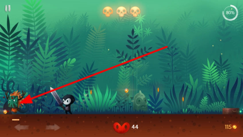 2、在手机上通过手指滑动操控角色,主动对遭遇的敌人发起攻击,依靠战斗推动游戏进程,过程中需留意自身血量情况。