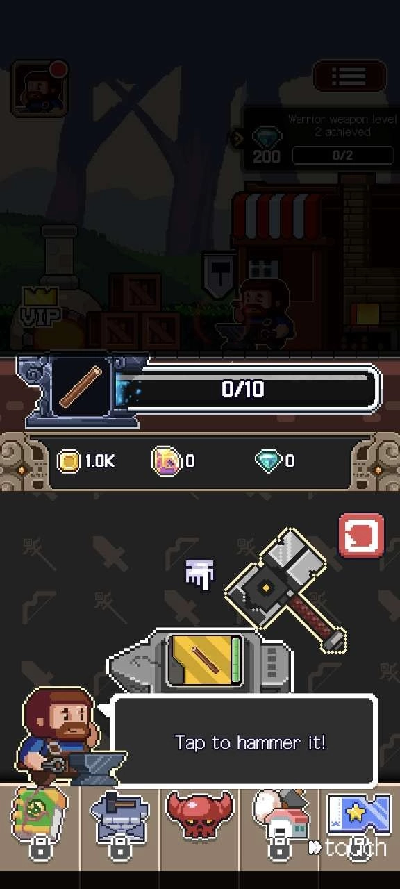 接下来点击锻造选项,用锤子打造武器,以此夯实战力基础。