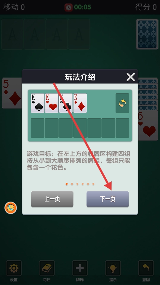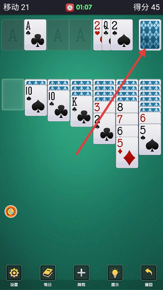 当陷入无法推进的局面时,点击左下角的发牌按钮即可,但每次点击都会使游戏难度有所提升。