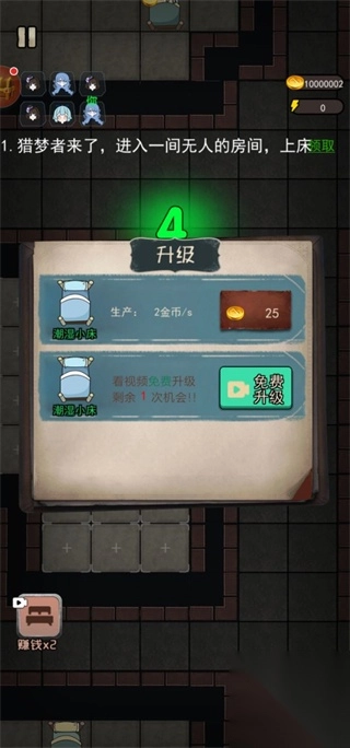 进入宿舍后,要优先对床铺进行升级,这样能快速获得金币,而金币是后续开展建设与防御工作的基础。