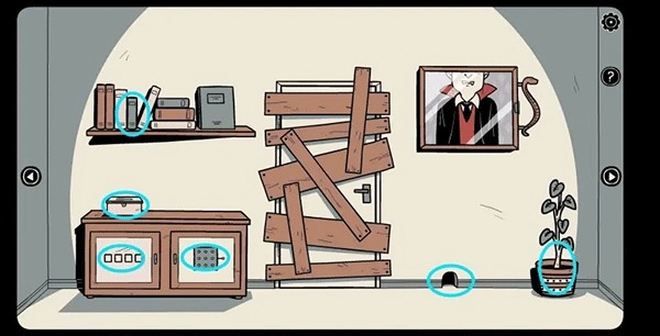 留意吸血鬼触发的反馈提示,按特定顺序操作以解锁相框后的隐秘箱,再通过箱内开关开启出口大门,离开场景即完成全部流程。