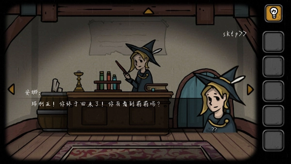 拿到宝石后,我们就需要用到之前准备的树枝、果实和药水了。首先取出药水,接着按照顺序把树杈、果实以及宝石依次放进去,这样我们的药水就能变成安娜的魔法药水啦。