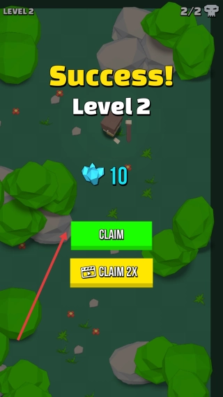 把所有魔物清理干净后,当屏幕上显示“Success,Level2”的界面时,点击那个绿色的“CLAIM”按钮,就能获得10颗蓝色晶体,还能开启接下来的内容。