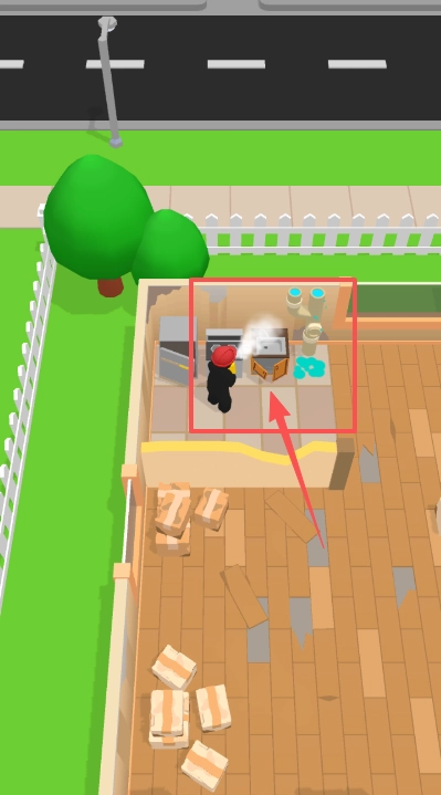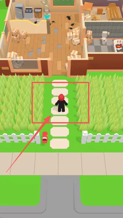 1. 点击红发角色脚下的石板路,依照提示修缮破旧房屋,清理垃圾、驱赶虫子并修复破损的地板。
