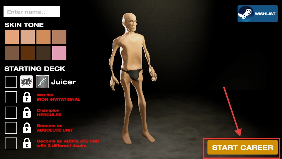 1. 设定角色肤色、起始卡组(例如【Juicer】),点击【STARTCAREER】,正式开启健身生涯。