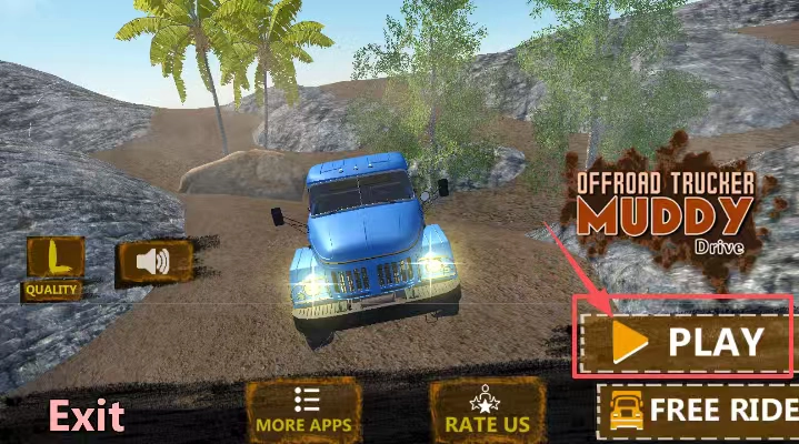 1、点击PLAY按钮,启动游戏,开启蓝色卡车在泥地的越野驾驶之旅。