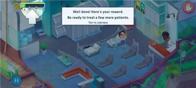每治愈一位患者,系统会发放金币奖励并更新界面左上角的进度条,当进度完成时,就能解锁用于升级医疗设备的星星道具。