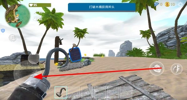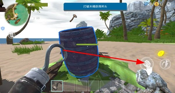 2. 寻觅到木桶并将它毁坏,从木桶中获取斧头这一工具,以此为后续开展砍伐树木、收集资源等行动做好铺垫。