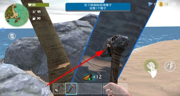 3、拿起获取到的斧头,对棕榈树进行砍伐,从而获取椰子等各类资源,这些资源能够满足角色在荒岛上的生存所需。