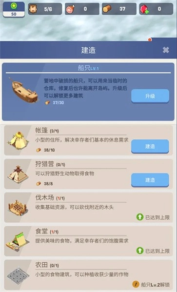 点击界面中间的“建造”功能,就可以依据当前的需求来建造各类物品。