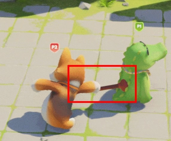 在这片充满趣味的竞技区域里,散落着各式各样的互动道具:有的长柄物件挥动时能划出环形的攻击范围,有的圆形挡板能精准困住对手,还有粗壮的棍状工具适合直接击打;地面上还能找到罐装物品,使用后会进入短暂的防御强化状态,不仅能恢复一定的耐力,还能降低后续的能量消耗。所有近距离使用的道具都具备让对手陷入短暂眩晕的效果,此时可以选择进入假死状态来规避后续攻击,但这个策略往往很容易被对方识破并针对性攻击,风险较高。