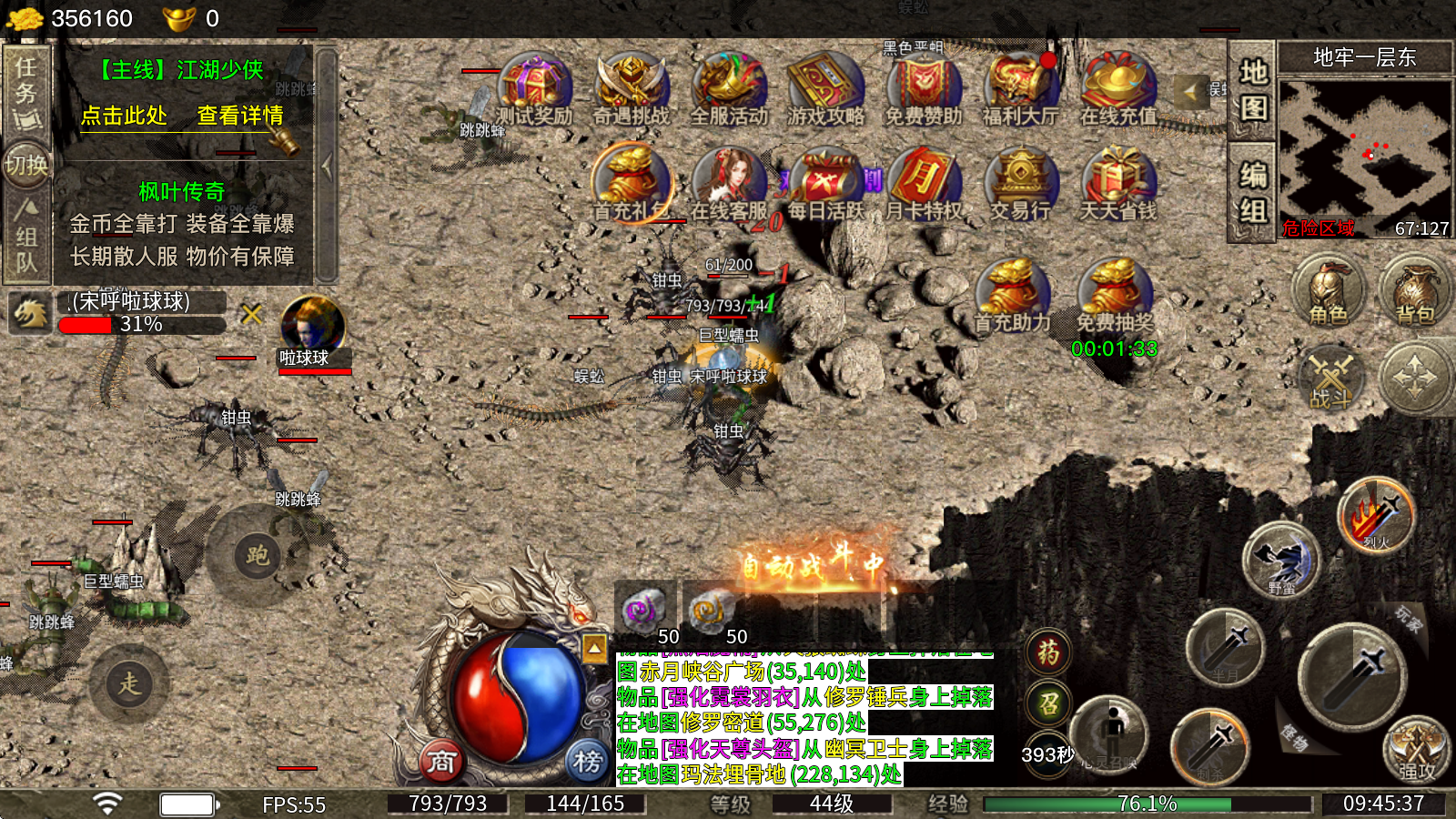 枫叶传奇,176复古三职业版本,深度耐玩的复古传奇,在重温情怀的同时,感受不一样的激情!本服所有材料均可在游戏内产出,可蹲BOSS可挂机,老板收散人材料提升是唯一途径!游戏内三职业平衡,无论前中后期,不会出现秒杀情况,输赢全看操作!所有玩家均可免费升到顶级,所有提升经验的方法都来自打怪,时间才是提升的答案!