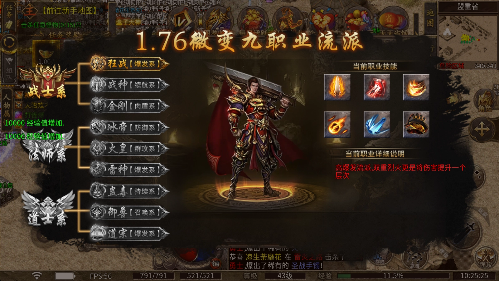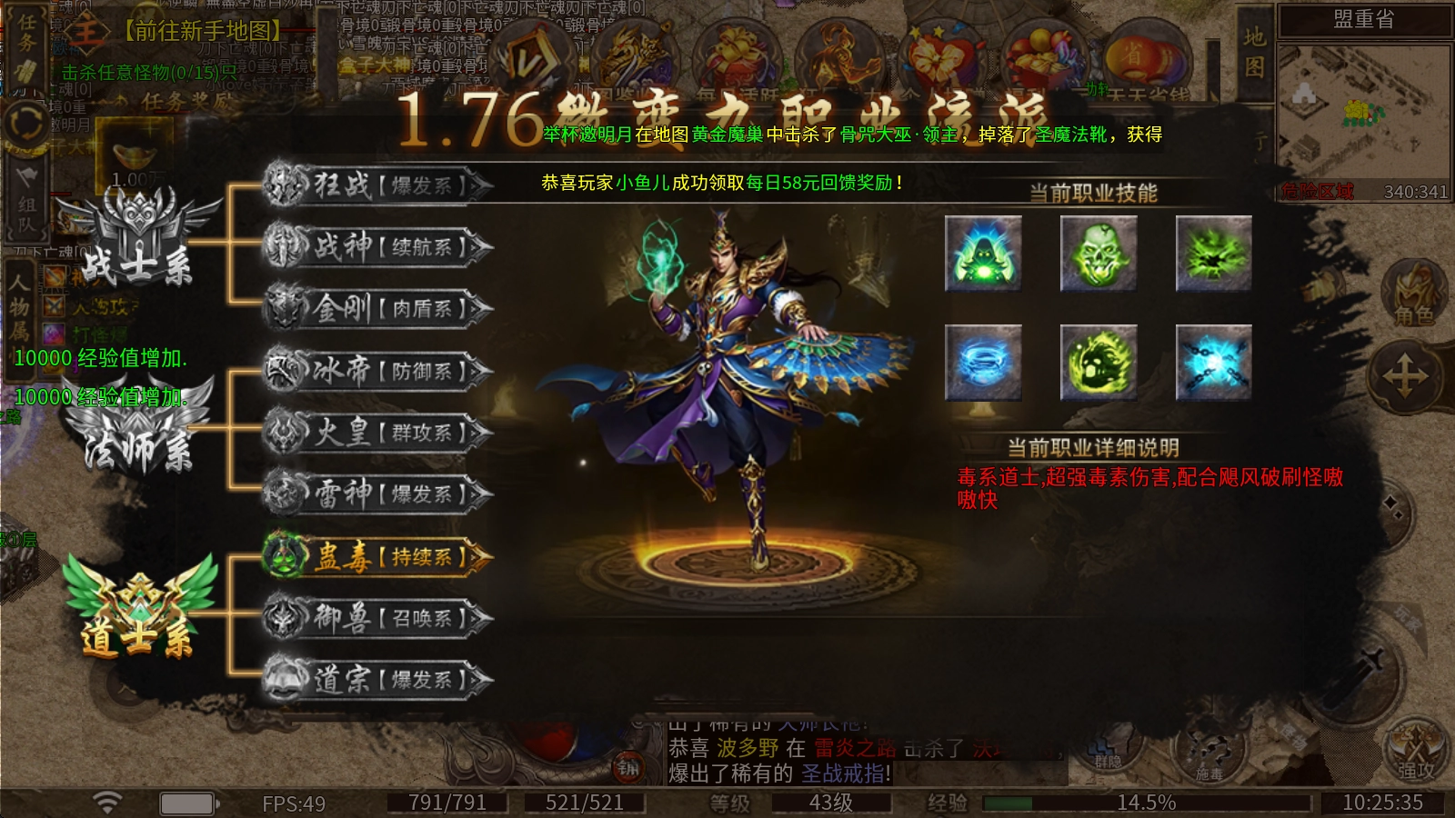 本服务器提供战法道三大职业供玩家选择,每个职业都设有强力分支可供挑选,玩家能够自由搭配专属的流派发展路线。
