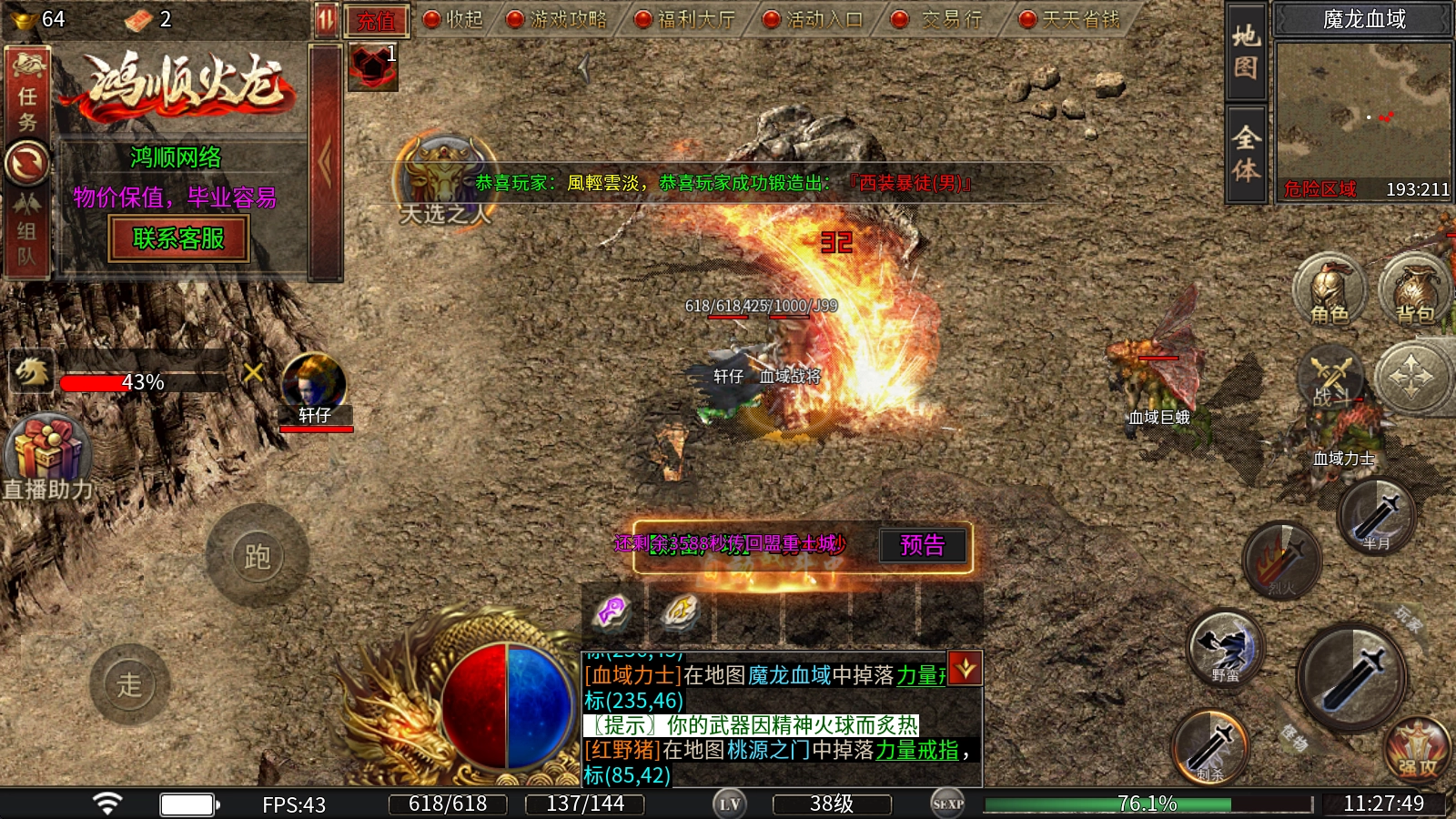 鸿顺火龙,180特色火龙微变单职业版本,依托8年传奇运营经验精心打磨,定能带来前所未有的热血体验!上线即赠自动捡物、自动回收等实用功能,助你轻松起步下地图砍怪,升级打宝效率拉满!攻速盾牌在手,砍怪快如切瓜;奇遇时装掉落,惊喜接连不断!全新玩法混沌金莲震撼登场,多样红色极品BUFF任你选择,自由搭配打造专属流派!