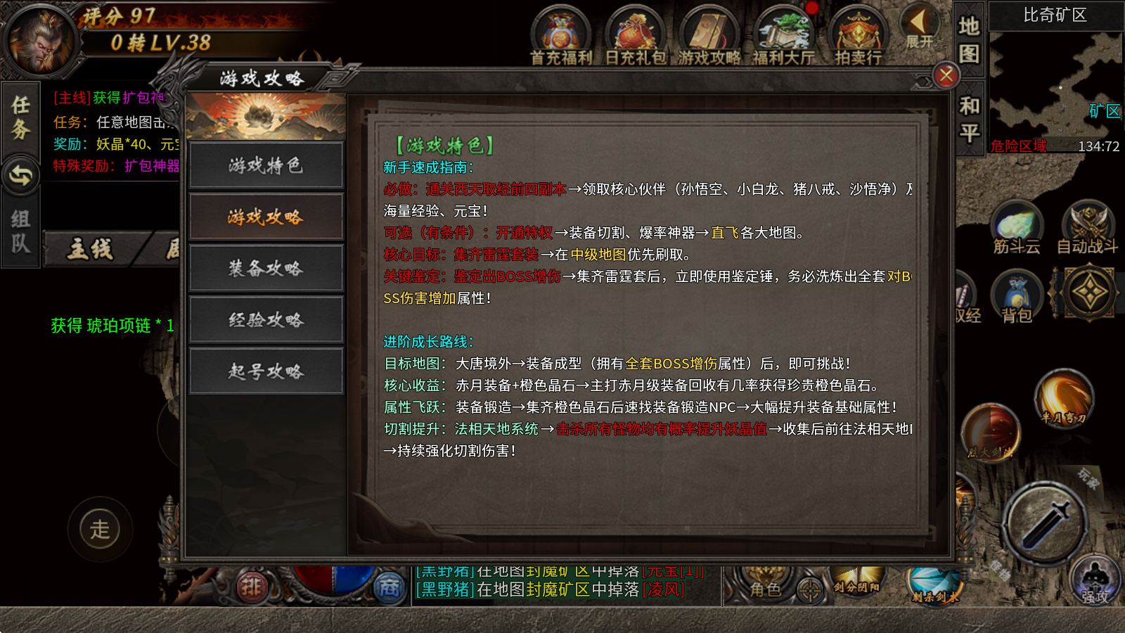 可选(有条件):激活特权可获取装备切割、爆率神器,随后直接传送至中级地图。