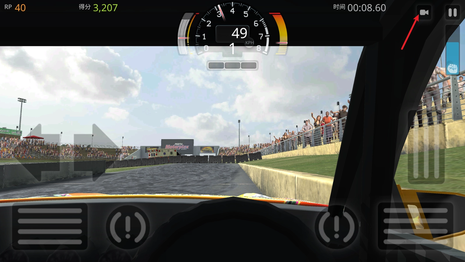 点击右上角的摄像头图标,我们就能切换到不同的视角来进行驾驶操作。