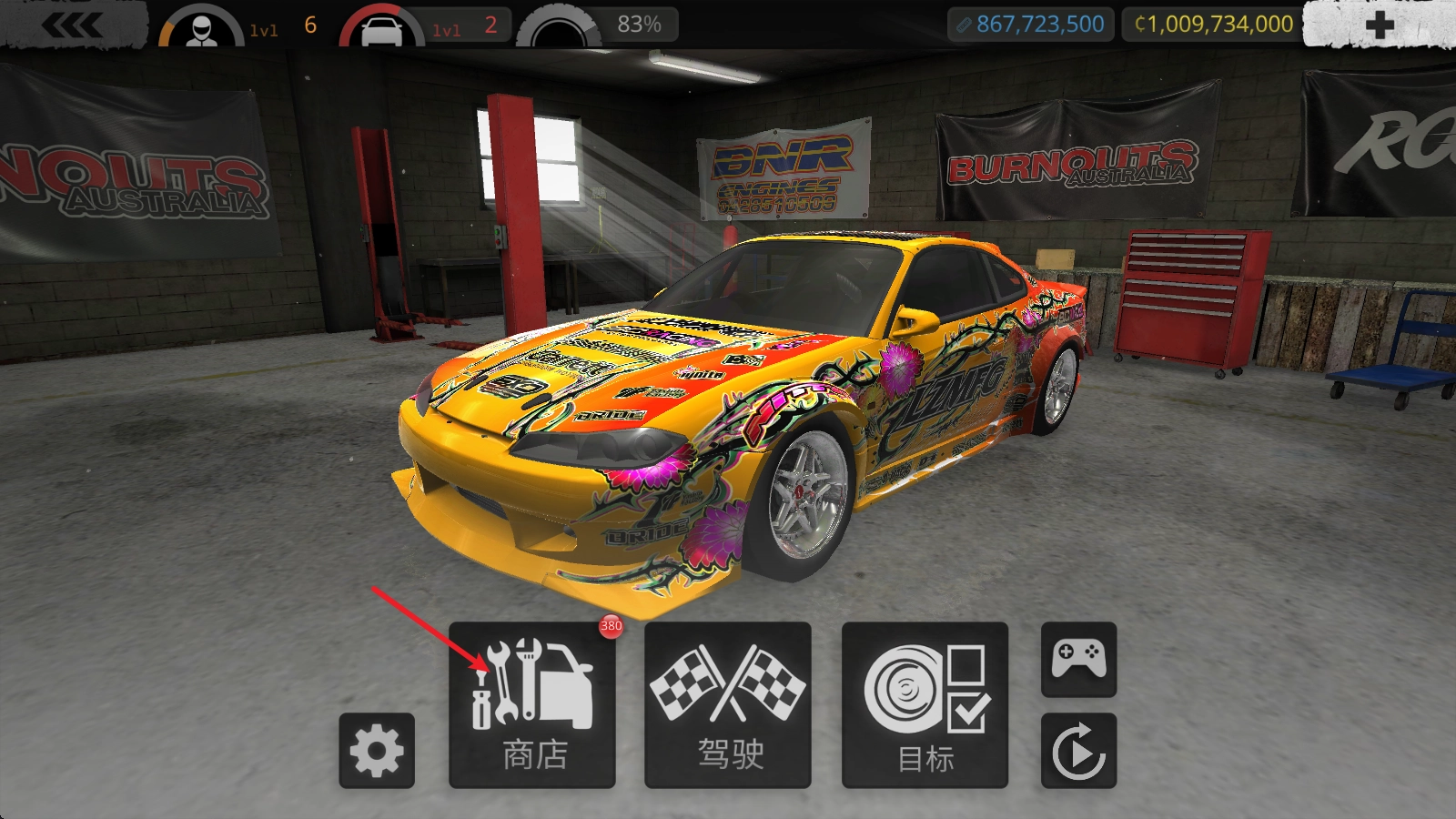 主界面中点击商店,进入到自己的车库中。