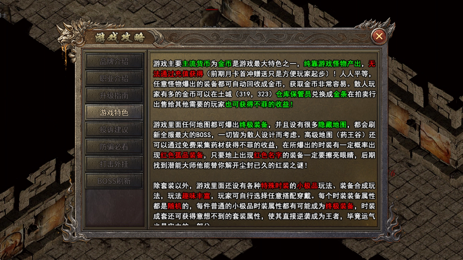 游戏里所有地图都能爆出终极装备,还设置了不少隐藏地图,这些地图都会刷新全服最强的BOSS,所有设计都充分考虑了散人玩家的需求。