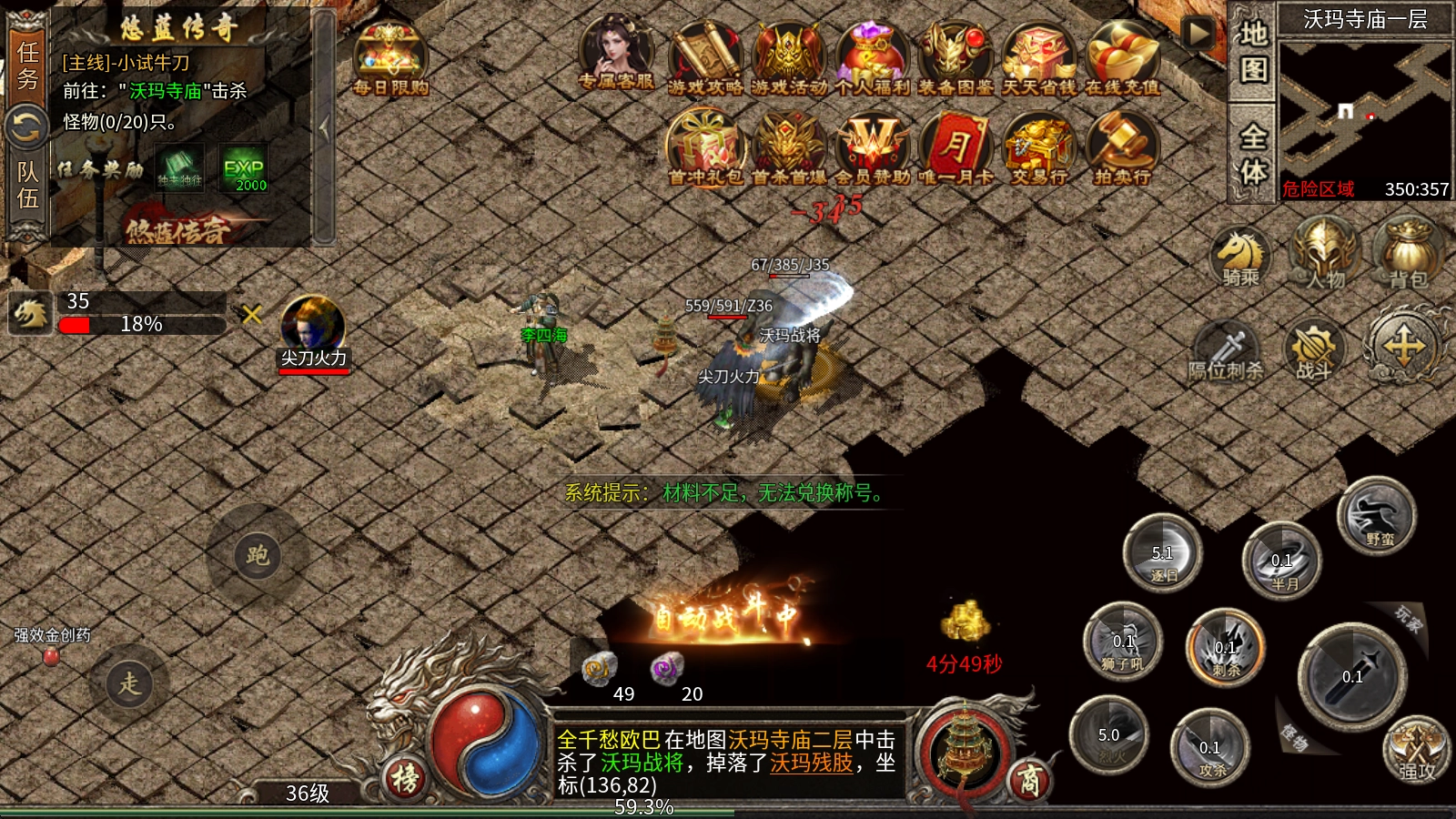 任意怪物掉落的装备都能自动回收兑换成金币,获取金币的方式十分简单。