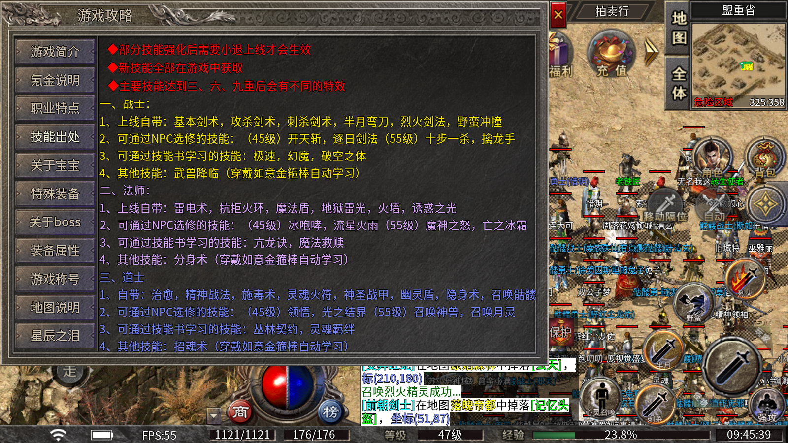 可通过NPC选修的技能如下:45级可学开天斩、逐日剑法;55级可学十步一杀、擒龙手。