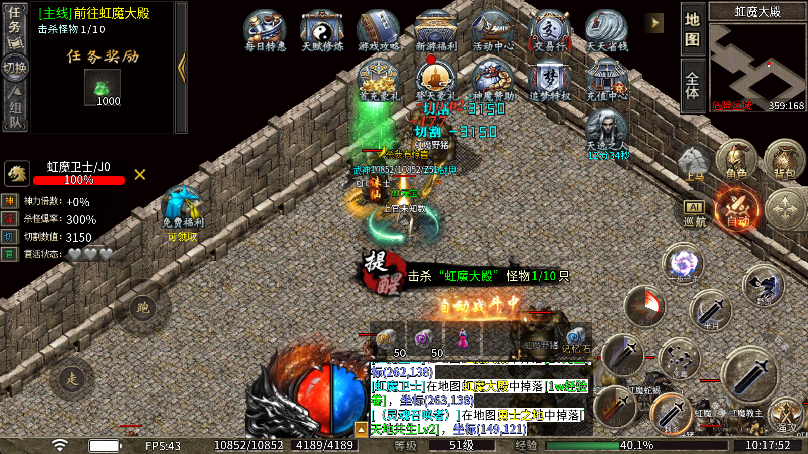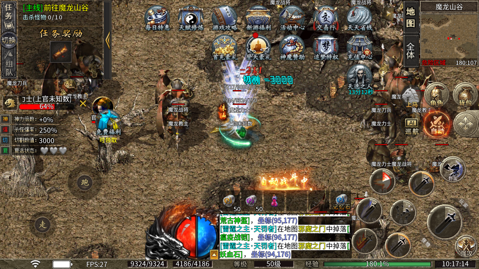 江九神魔对决,185单职业沉默定制版本,登录即赠酷炫称号,更有自动回收、自动拾取、海量货币等超值福利享不停!精彩的大陆剧情待你解锁,完成剧情还能赢取海量真实充值奖励!本服所有装备BUFF均为全新专属设定,刷怪PK体验拉满,千余件专属装备与上百张特色地图邀你尽情探索!海量真实充值福利持续放送,零氪也能轻松崛起,绝对是散人玩家的理想乐园!