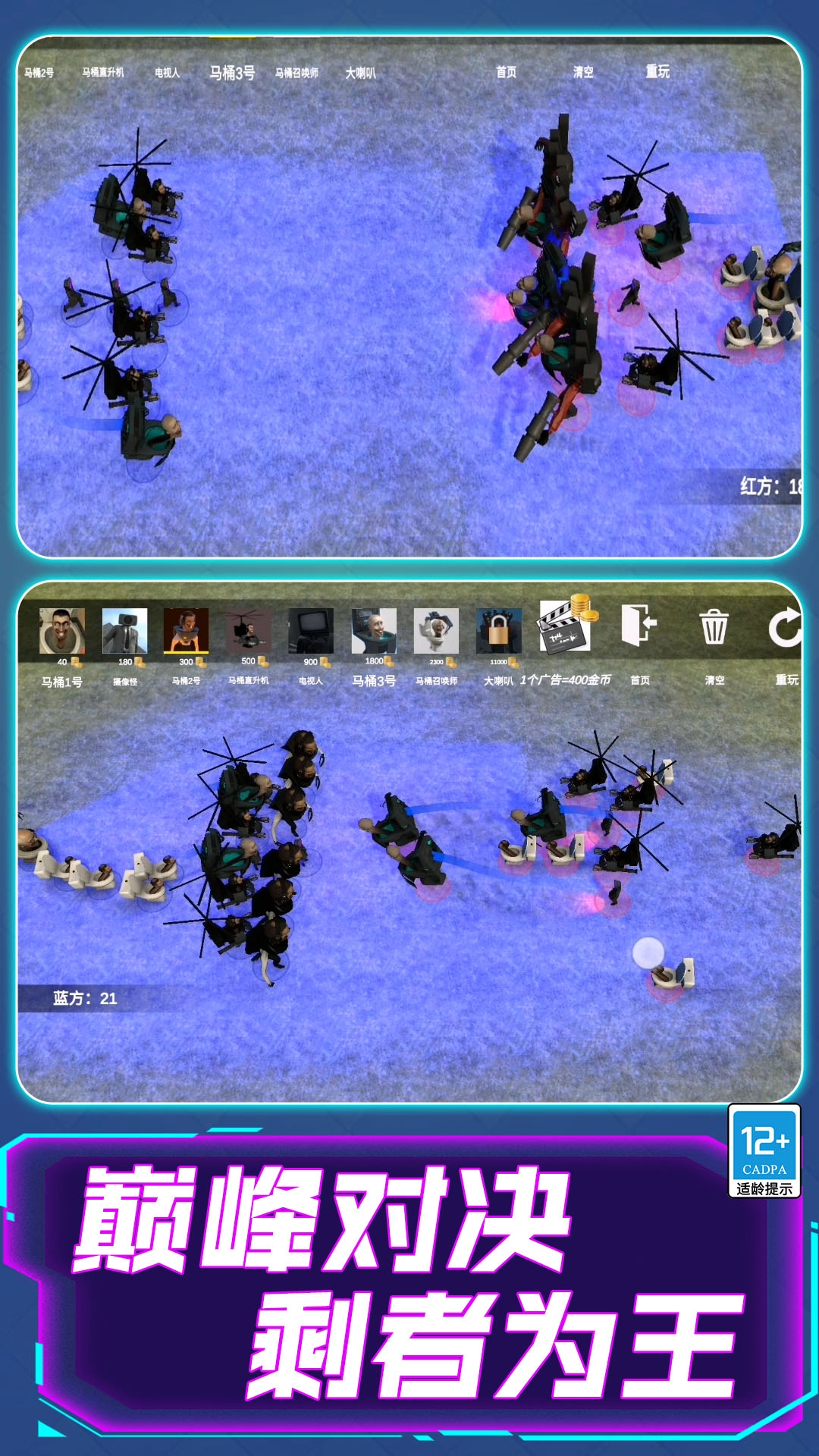 技能与装备系统支持玩家自由组合搭配,助力大家成长为最强马桶人,赢取荣耀与奖励。