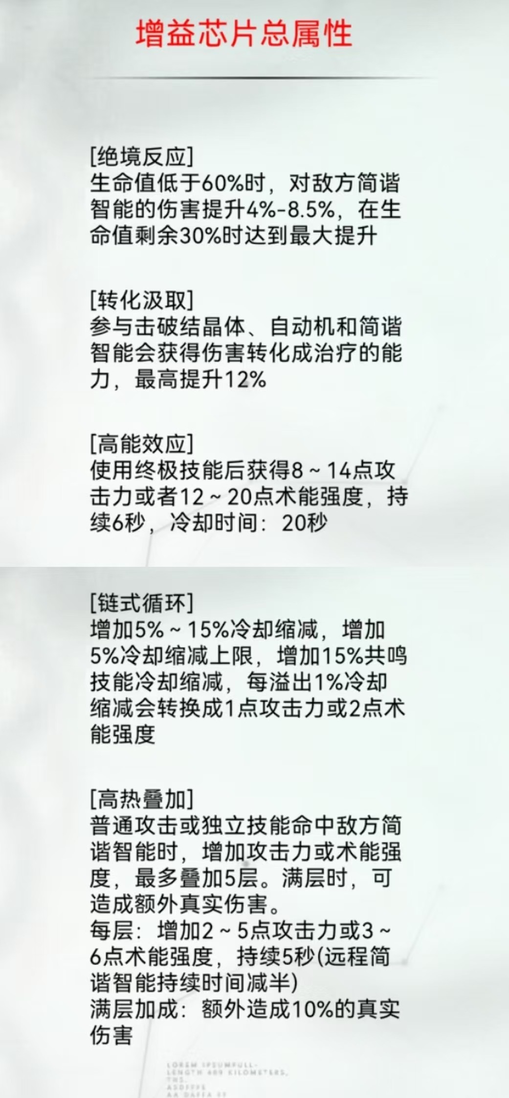 推荐增益芯片:【绝境反应】+【转化汲取】+【高能效应】+【链式循环】+【高热叠加】
