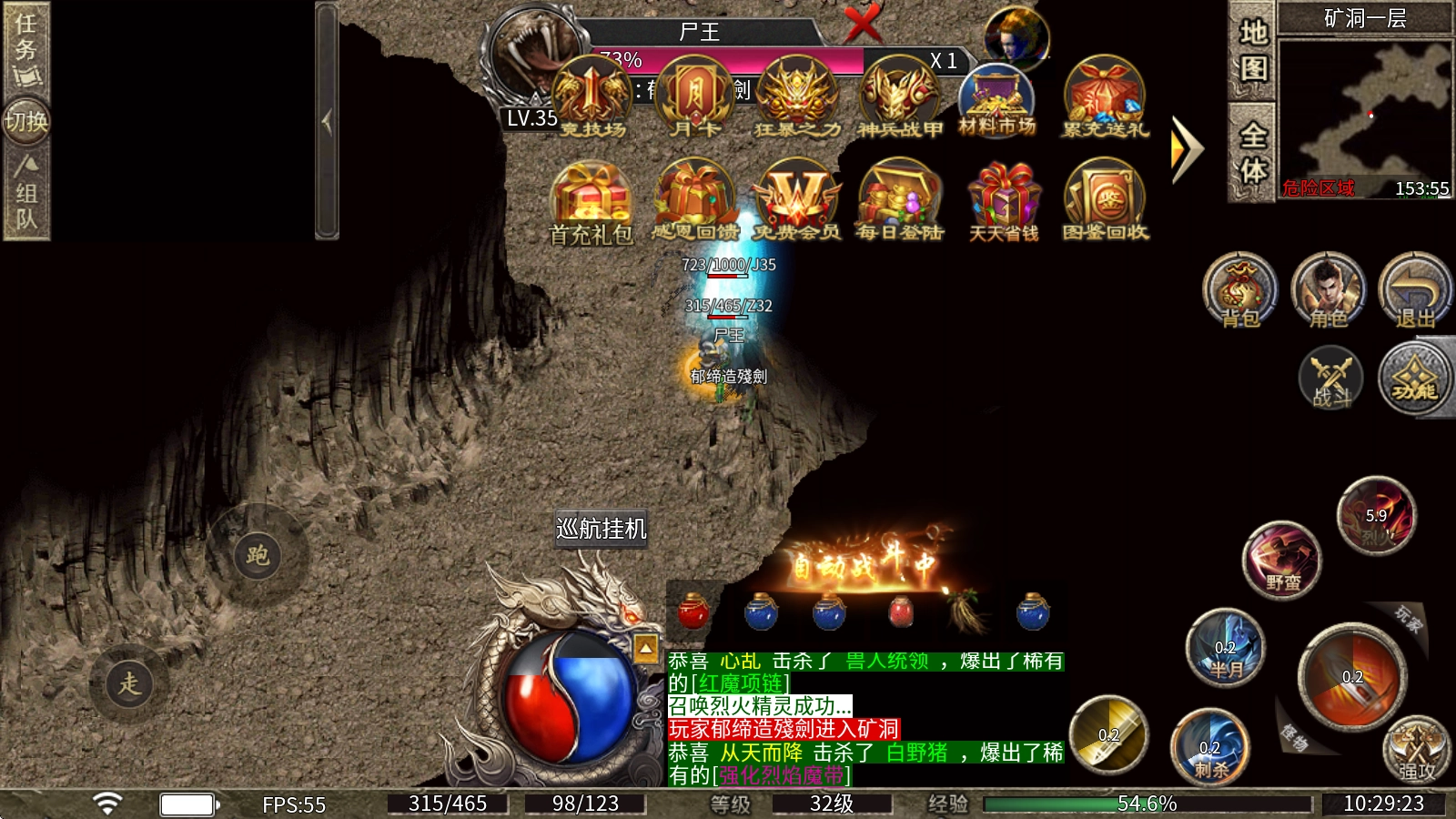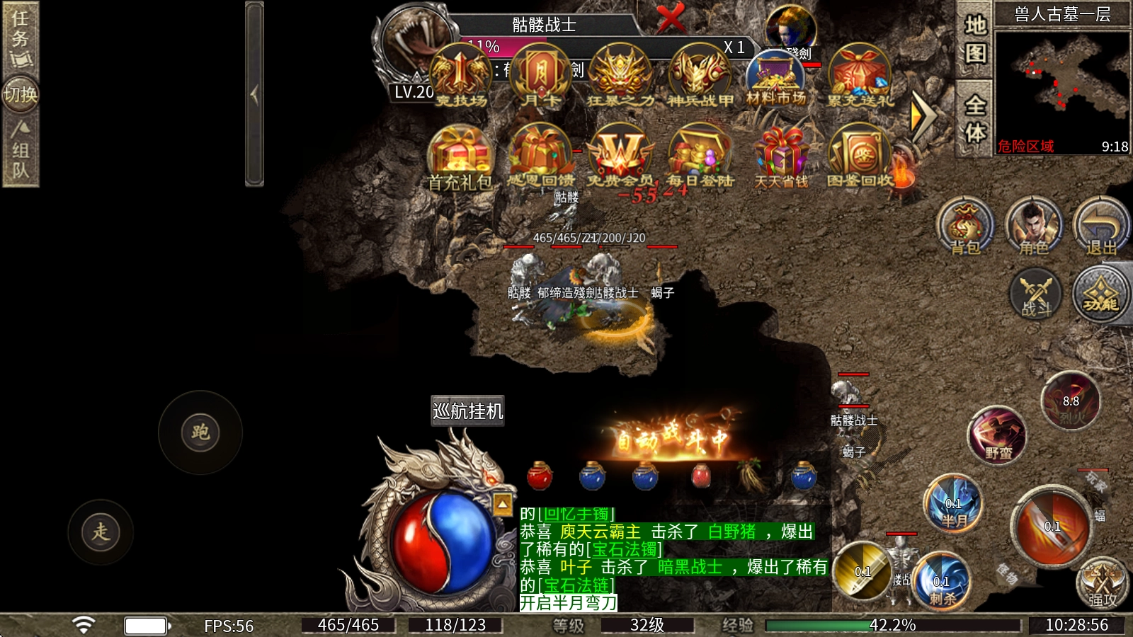 【狂战】的核心玩法围绕火系技能(烈火剑法)展开,具备高爆发特性,能够在瞬间释放出巨额伤害。