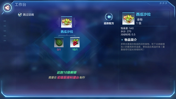 其次是西瓜沙拉,所需材料为1份西瓜和1份红浆果。食用后可增加540点饱食度与270点水分,能在炎热地带帮助人们短时间内抵御酷热。