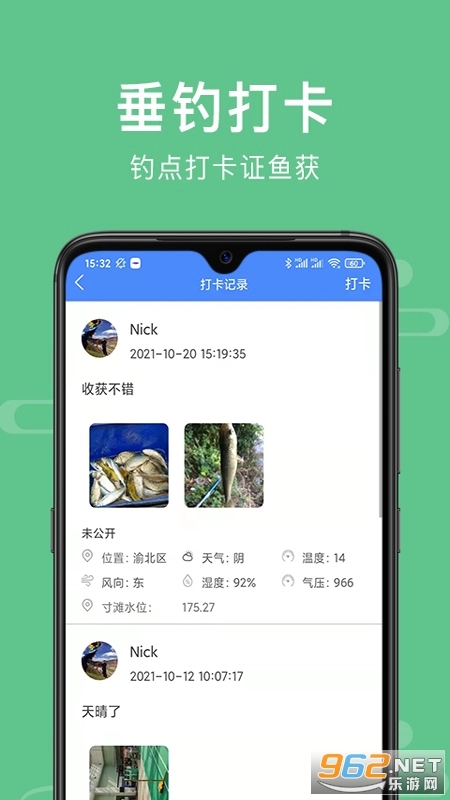 渝钓通是很多钓鱼爱好者的推荐之选,在这里既能打卡垂钓记录,也能分享日常动态与钓鱼故事,大家可以通过平台相互交流、互动,轻松享受钓鱼乐趣。平台还提供可钓鱼地点及相关信息查询,包括禁钓区域提示,始终致力于服务每一位用户,用户可自行探索使用各项功能。