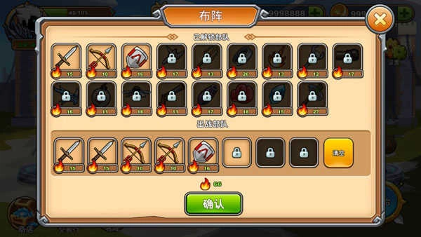 解锁的部队需要在布阵中上阵才会出现在战场上。