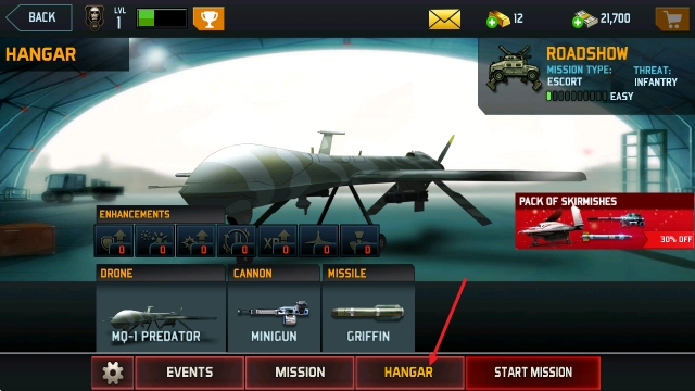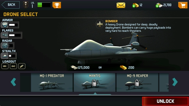 8种不同类型的无人作战飞机可供解锁使用,玩家能够自由搭配火炮、导弹、火箭弹等武器,以完成隐蔽的作战任务。