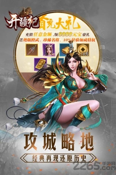 开疆纪是一款以历史为题材打造的国战游戏。它依托历史上真实发生的事件作为背景,为玩家呈现出真正的大场面战斗玩法。游戏中各类武将与兵种可供挑选,助你组建无人能敌的绝世兵团。快来本站体验吧!
