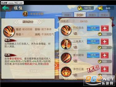 比如在主动技能里,烈焰焚心可以对敌人造成伤害,还存在一定概率附加一回合的眩晕效果;