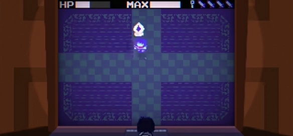 看到白色地板后,找到带有游戏图标的门口,使用之前从红色宝箱中获得的道具将其打开。