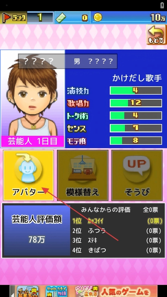 2、在房间内,能够查看“かけだし歌手”的基础属性,像演技力、歌唱力等初始数值,点击言¥し<見る进入角色详情页面。