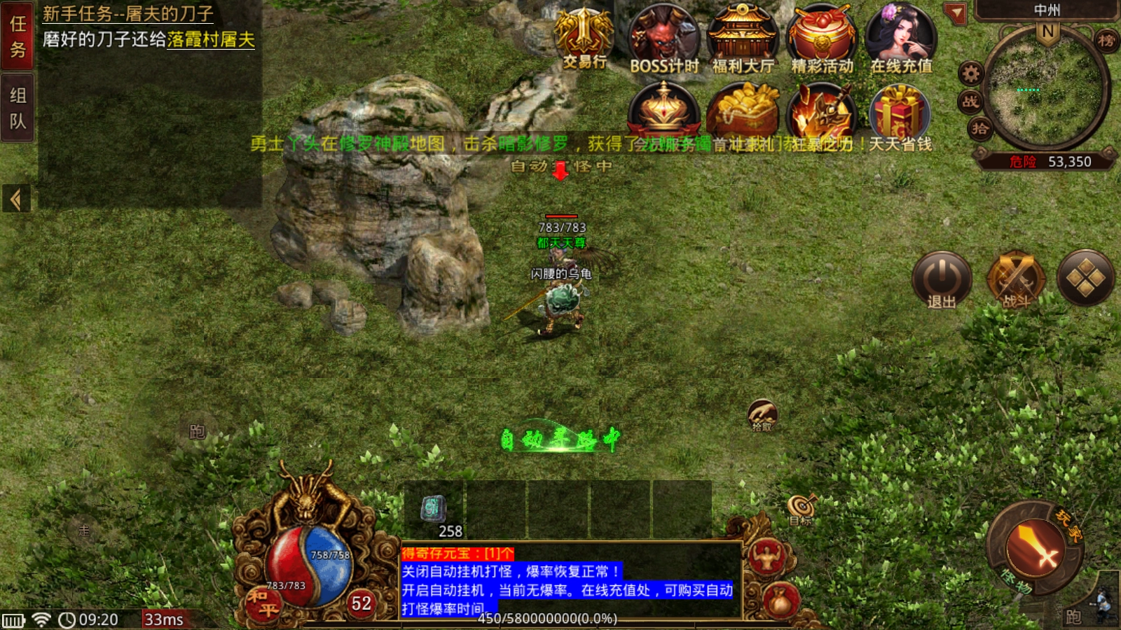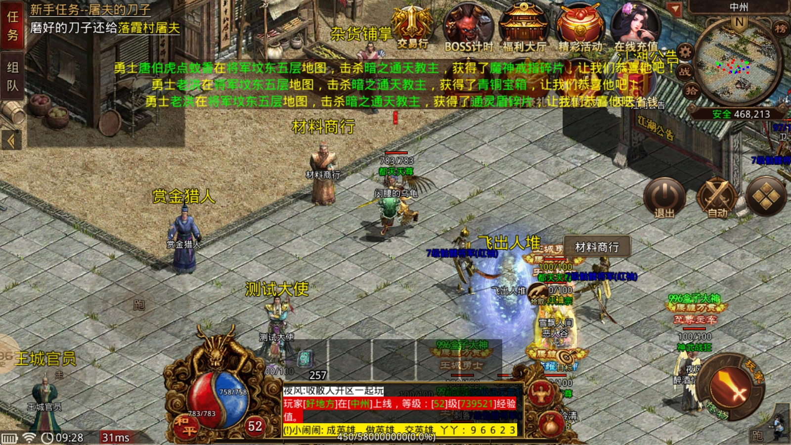 在等待室和落霞、中州区域,有条件的玩家可以前往老兵左侧的新手关怀大使处购买新手礼包,88元宝的价格性价比挺高。要是不想买,按步骤完成新手任务也完全没问题。去中州武馆的话,既可以自己跑过去,也能利用老兵商店的传送小技巧直接传送过去。