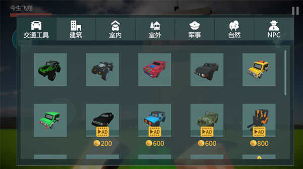 6、背包里面有各式各样的建筑模型、汽车模型以及人物模型,从中任选一辆汽车模型。
